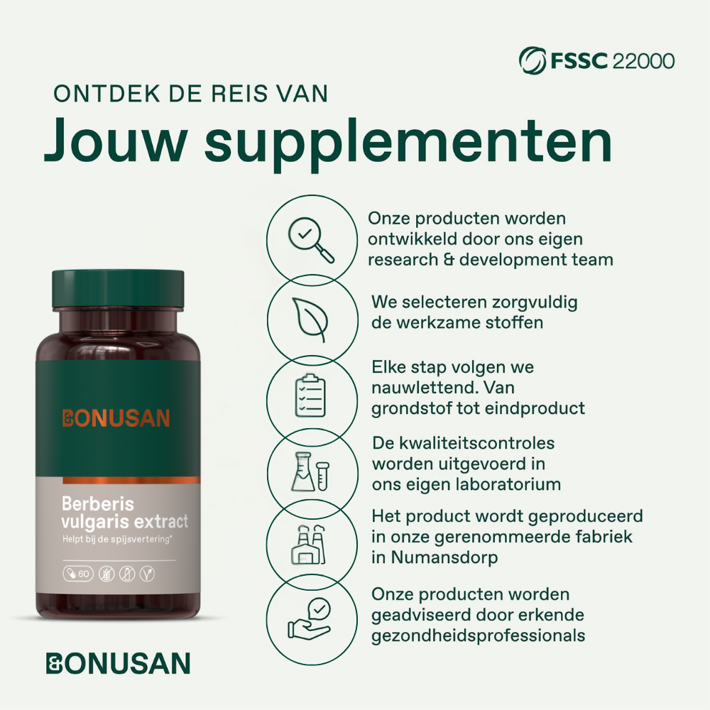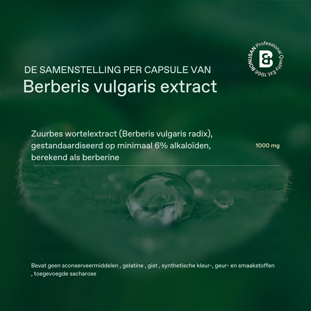 | Zuurbes wortelextract (Berberis vulgaris radix), gestandaardiseerd op minimaal 6% alkaloïden, berekend als berberine | 1000 mg |