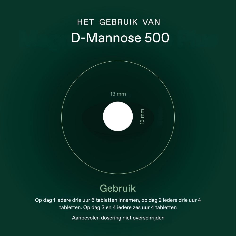 De kleine, gecoate tabletten zijn geschikt voor mensen die gemakkelijk willen doseren of tijdelijk behoefte hebben aan een hogere hoeveelheid D-mannose.